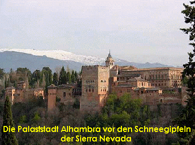 Granada ist der ideale Ort zum Träumen. Alleine schon die Alhambra und Generalife sind es wert, die Stadt zu besuchen oder gar dort zu leben. Aber Granada ist mehr: Es hat genau die richtige Größe, um den Besucher in wenigen Tagen schon einzunehmen. Der "Ring des Wasser" gibt der Stadt eine beinahe musikalische Geräuschkulisse. Im Stadtzentrum findet der Besucher mit den Cármenes (im typisch granadinischen Stil) des Albaicín und den klerikalen Bauwerke, wie der Kathedrale, der Königskapelle, San Jerónimo unnd San Juan de Dios ein reichhaltiges Spektrum der Architektur-Kunst vor. |